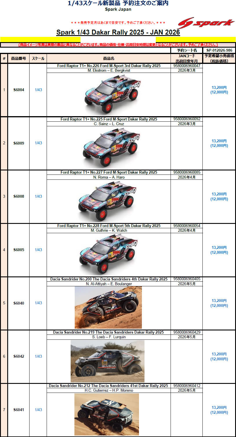 S6041 Dacia Sandrider No.212 The Dacia Sandriders 41st Dakar Rally 2025 H.C. Gutierrez - H.P. Moreno 13200円