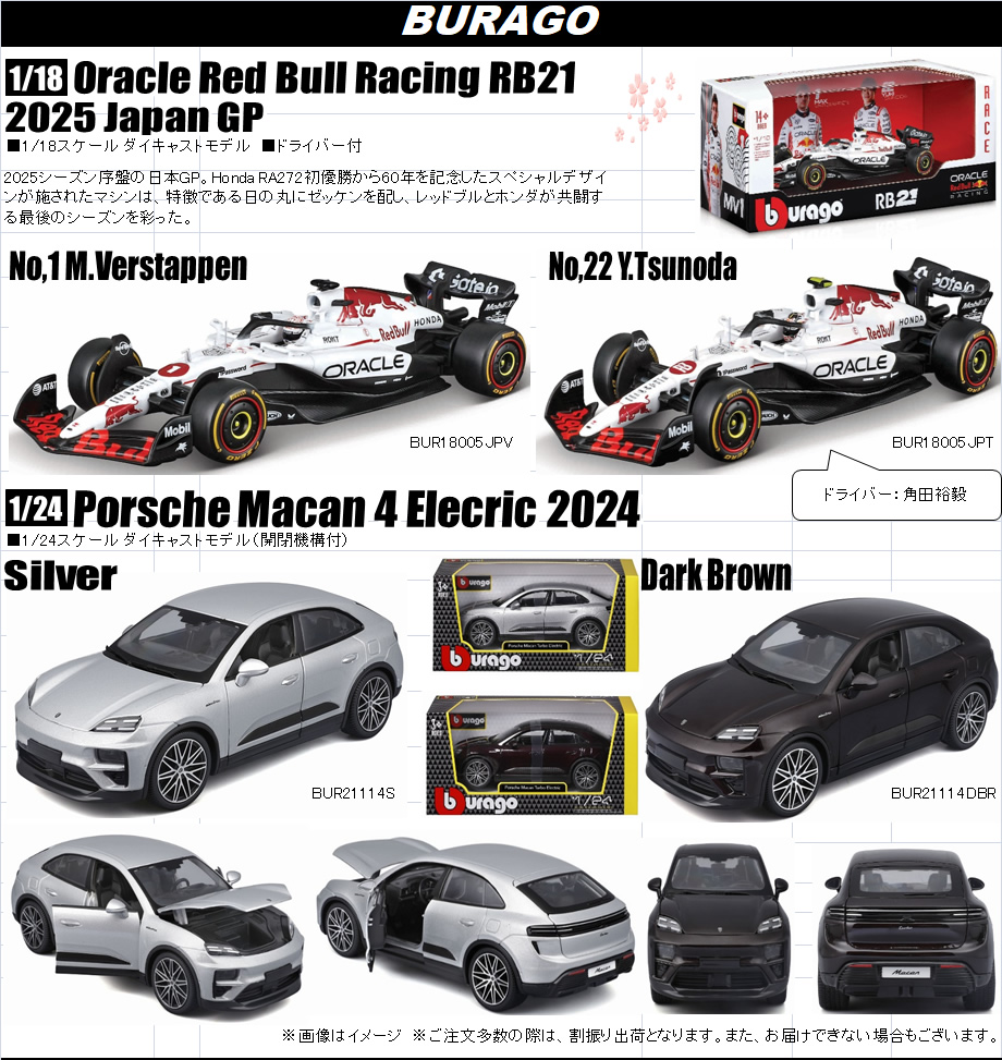 18分の1 ダイキャスト BUR18005JPV オラクル レッドブル レーシング RB21 2025 日本GP No1 M.フェルスタッペン ドライバー付 22000円