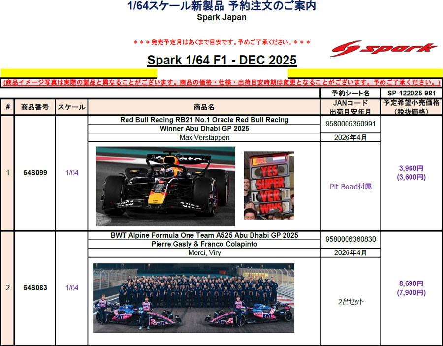 64分の1 ダイキャスト 64S099 Red Bull Racing RB21 No.1 Oracle Red Bull Racing Winner Abu Dhabi GP 2025 Max Verstappen 3960円