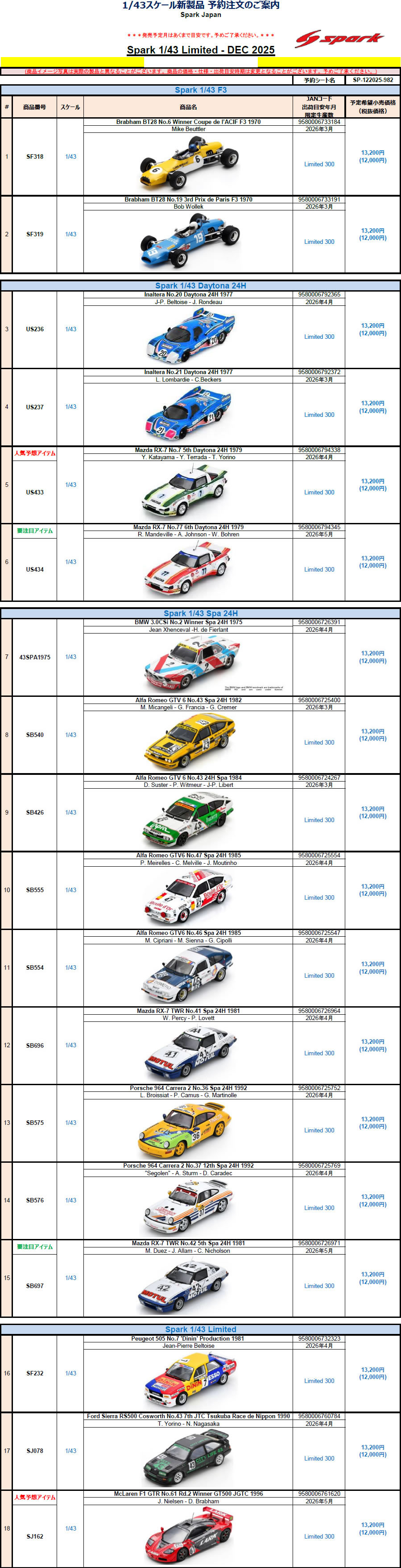 SB697 Mazda RX-7 TWR No.42 5th Spa 24H 1981 M. Duez - J. Allam - C. Nicholson 13200円
