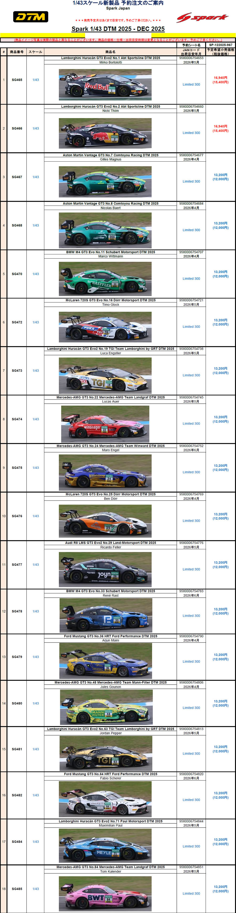 43分の1 レジン SG465 Lamborghini Huracan GT3 Evo2 No.1 Abt Sportsline DTM 2025 Mirko Bortolotti 16940円