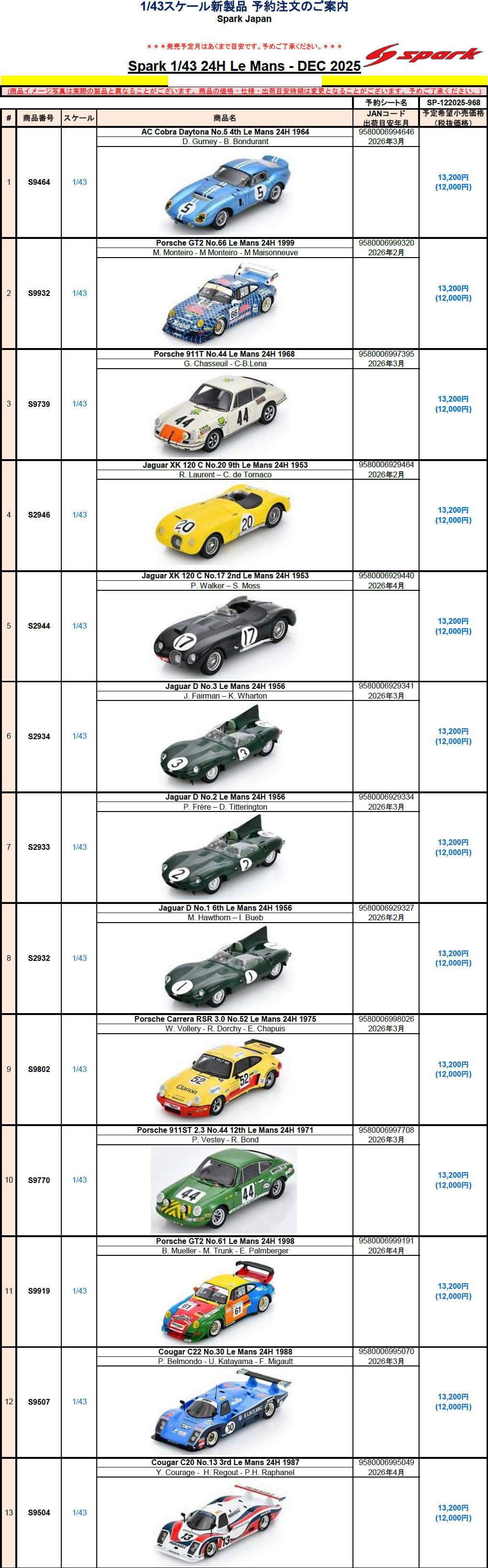 S9739 Porsche 911T No.44 Le Mans 24H 1968 G. Chasseuil - C-B.Lena 13200円