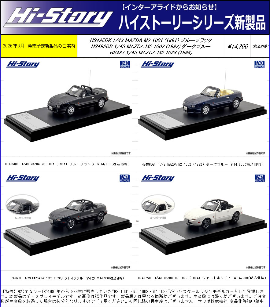 43分の1 レジン HS485BK MAZDA M2 1001 (1991) ブルーブラック 14300円