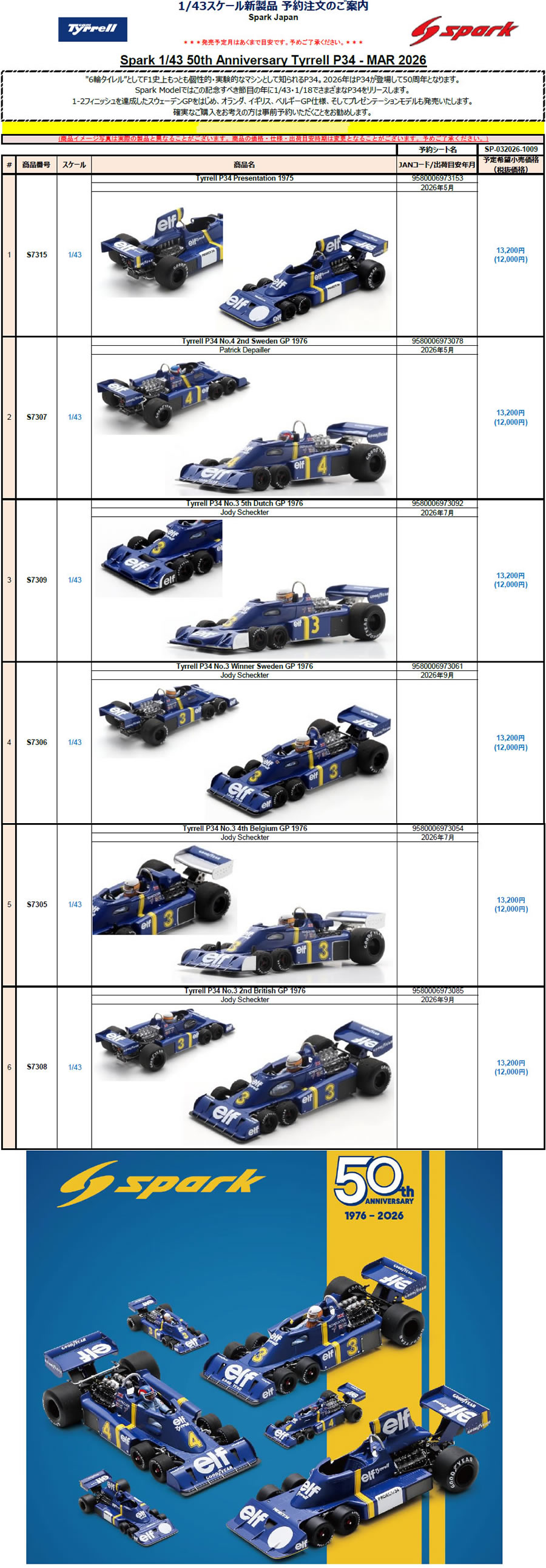 S7308 Tyrrell P34 No.3 2nd British GP 1976 Jody Scheckter 13200円