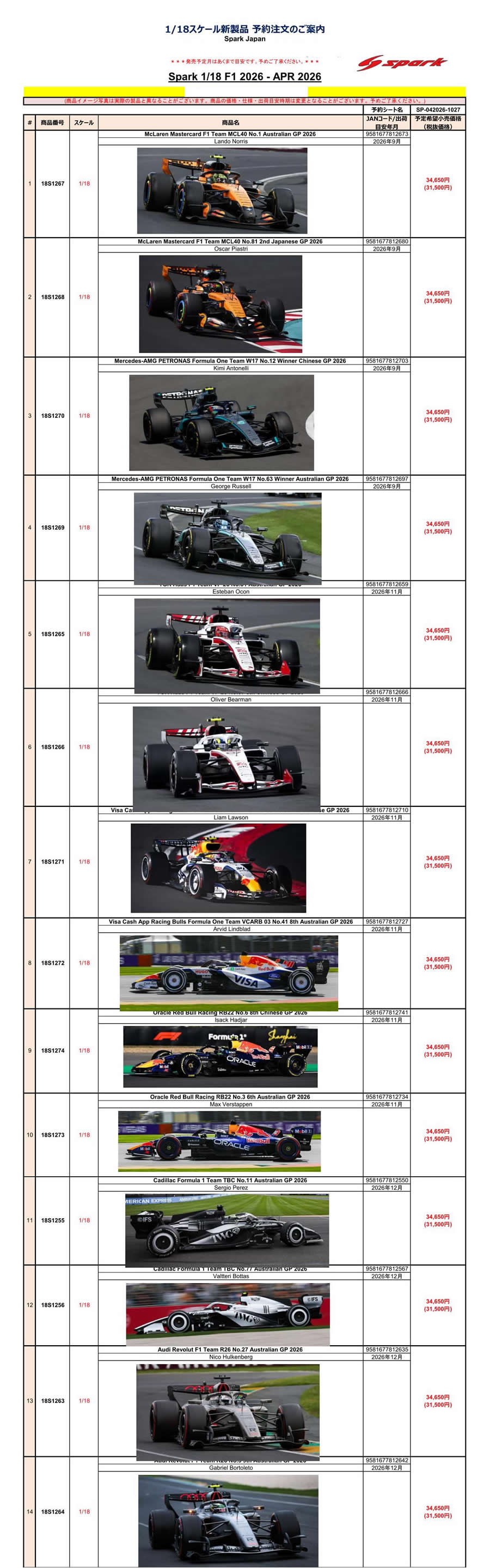 18S1263 アウディ Audi Revolut F1 Team R26 オーストラリア Australian GP 2026 N. ヒュルケンベルグ #27 34650円