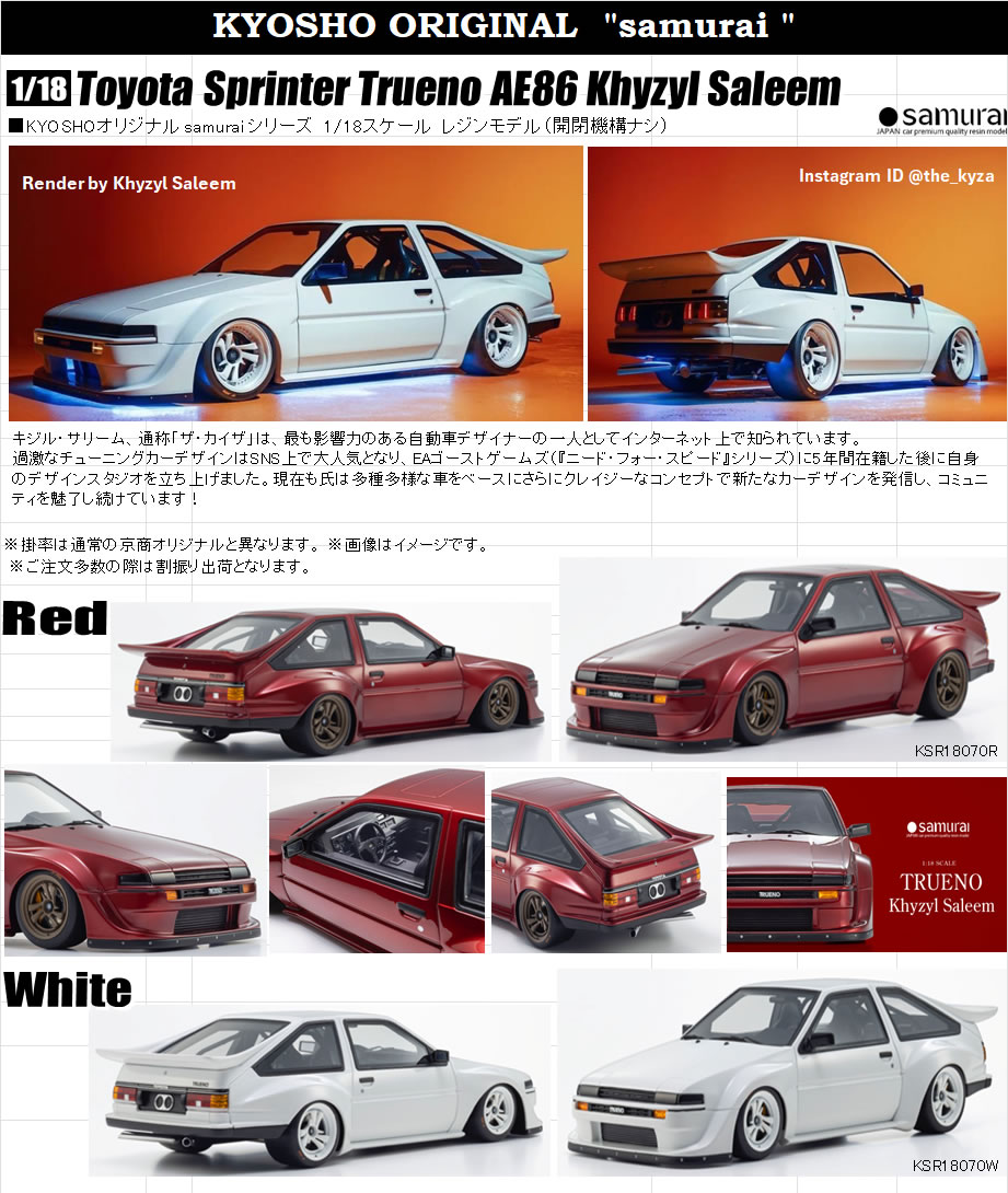 18分の1 レジン サムライ KSR18070R トヨタ スプリンター トレノ AE86 Khyzyl Saleem (レッド) 26400円