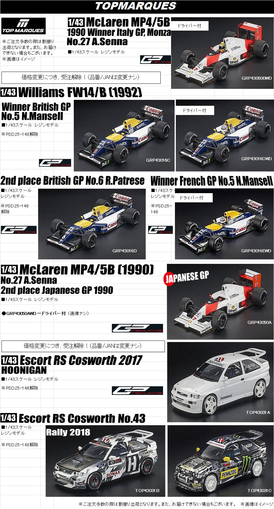 GRP43050AWD マクラーレン MP4/5B 1990 日本GP 2nd No.27 A.セナ ドライバー付 30580円