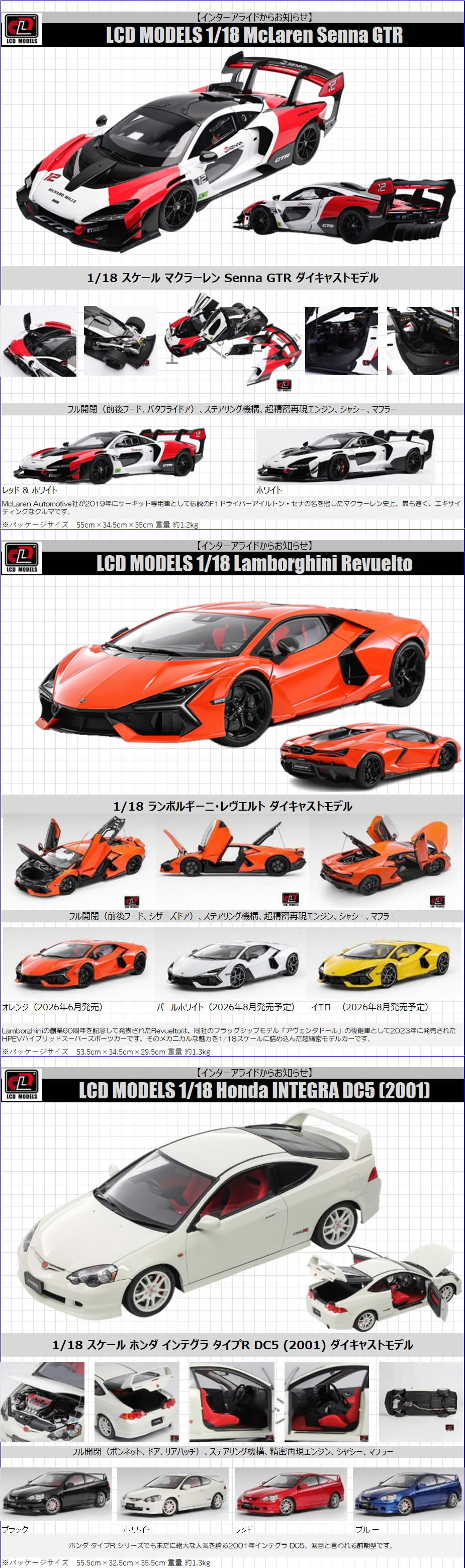 LCD18019BL ホンダ インテグラ DC5 ブラック 37400円 LCD18019WH ホンダ インテグラ DC5 ホワイト 37400円
