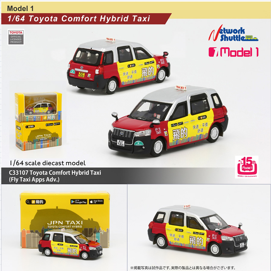 64分の1 ダイキャスト C33107 トヨタ・コンフォート ハイブリッドタクシー「FLY TAXI」アプリ仕様 3300円