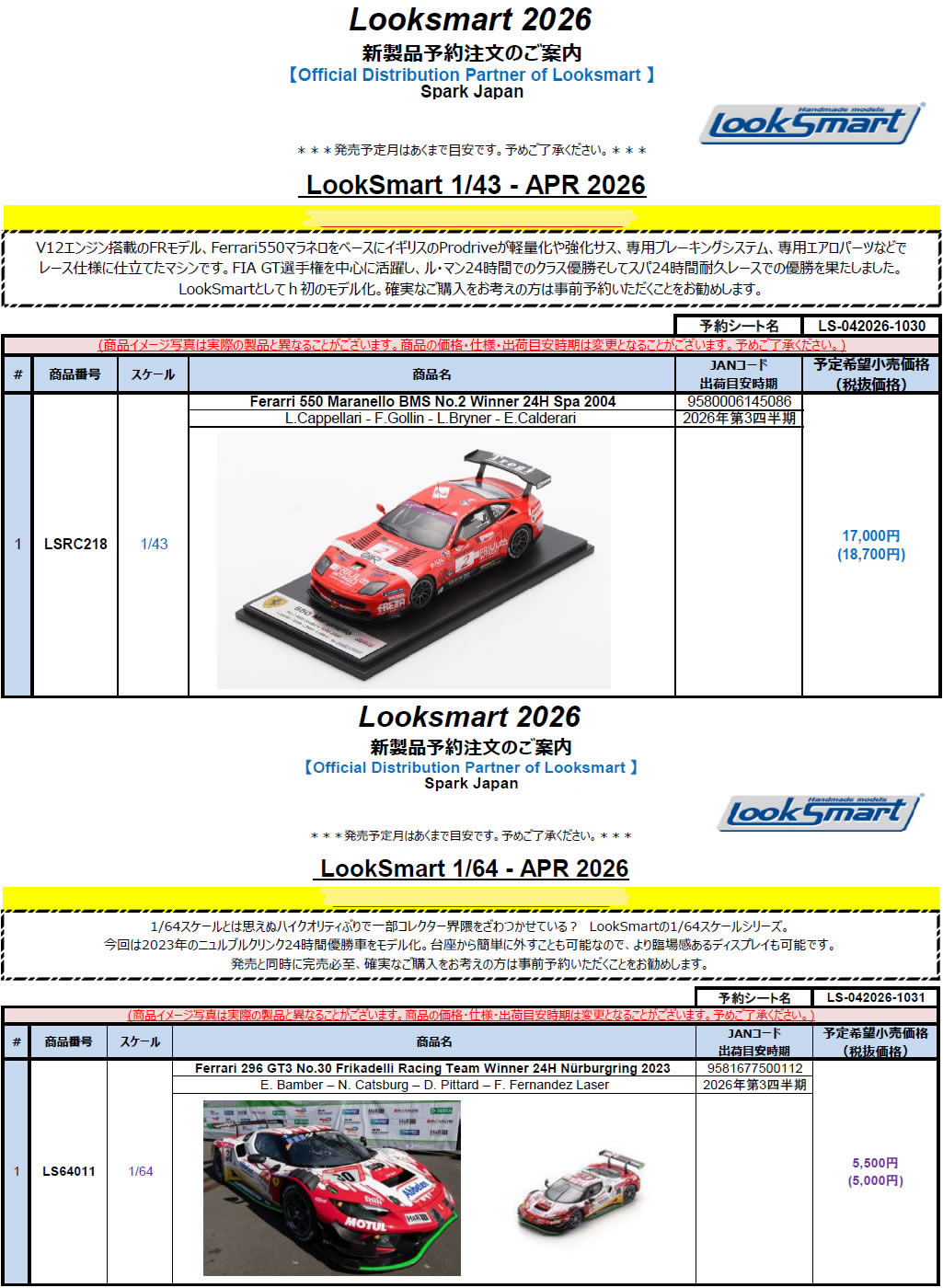 43分の1 レジン LSRC218 Ferarri 550 Maranello BMS No.2 Winner 24H Spa 2004 L.Cappellari - F.Gollin - L.Bryner - E.Calderari 18700円
