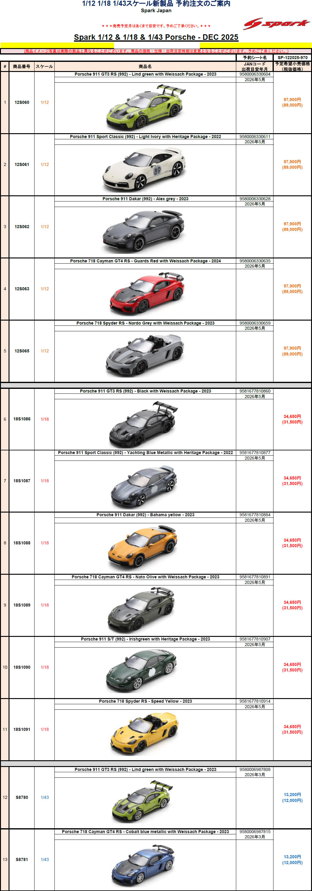 43分の1 レジン S8780 Porsche 911 GT3 RS (992) - Lind green with Weissach Package 2023 13200円