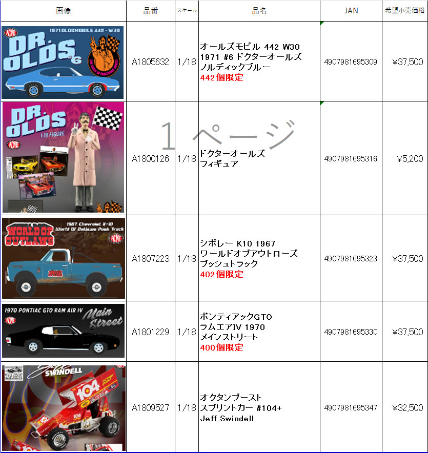 18分の1 ダイキャスト A1805632 オールズモビル 442 W30 1971 #6 ドクターオールズ ノルディックブルー 442個限定 41250円