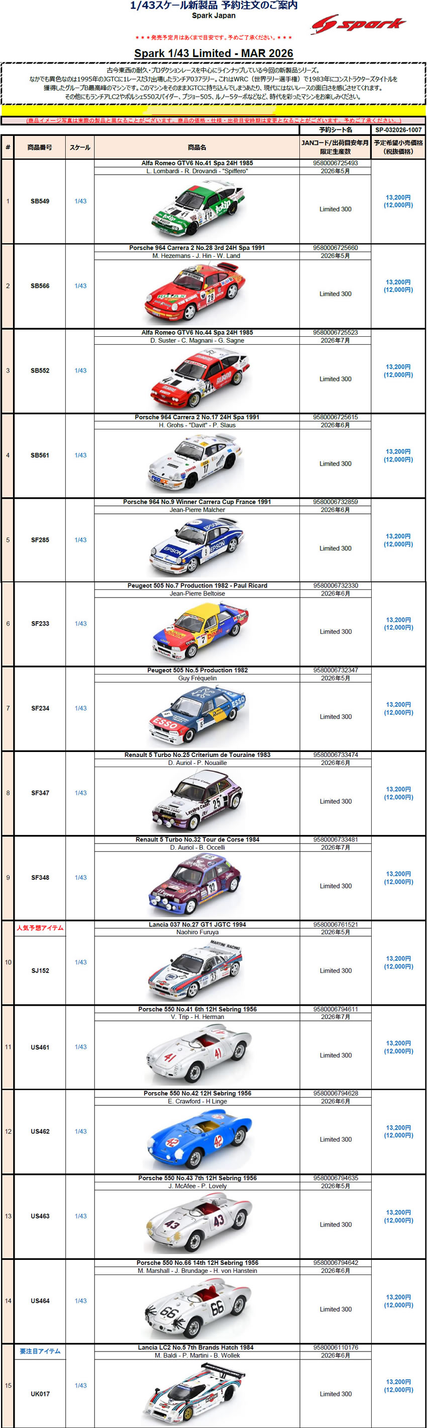 予約は、15日(日)の午後5時まで 18分の1は、定価の5%OFF 43分の1は、定価の10%OFFで受付中です。