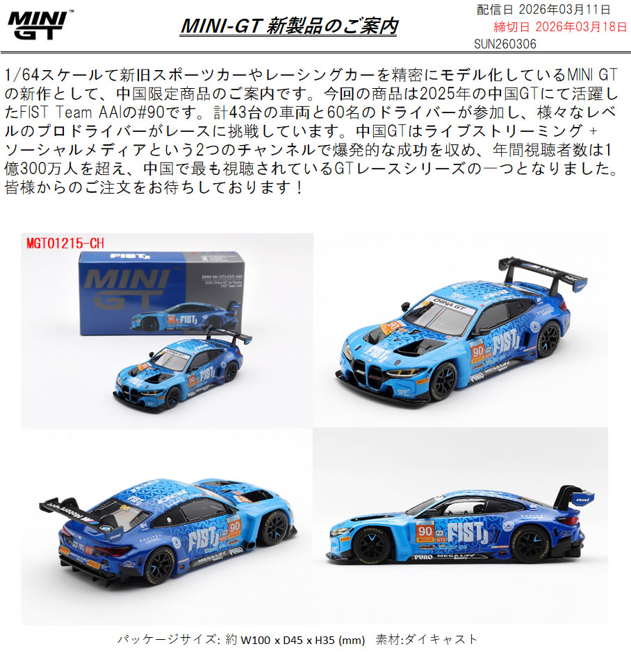 64分の1 ダイキャスト MGT01215-CH BMW M4 GT3 EVO 中国GT 2025 #90 FIST Team AAI(左ハンドル) 中国限定 3300円