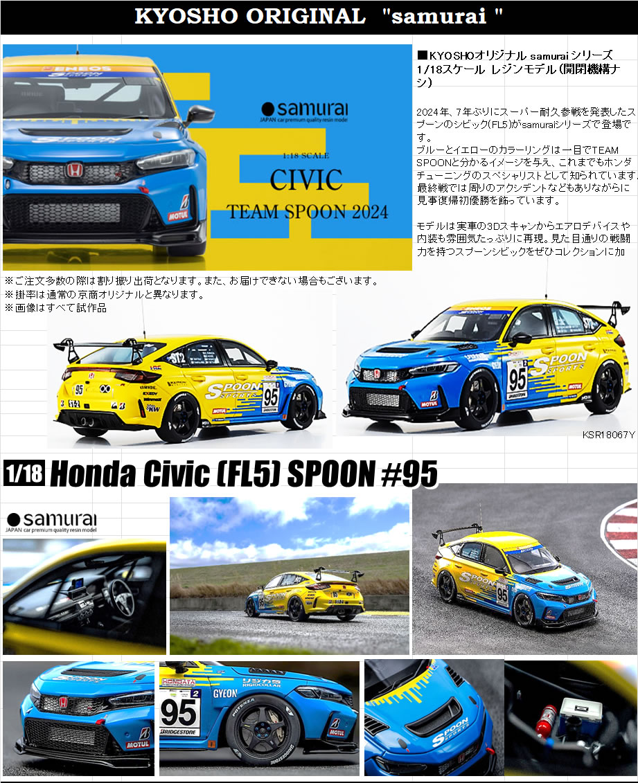 18分の1 レジン サムライ KSR18067Y ホンダ シビック(FL5) スプーン #95 限定 800個 26400円