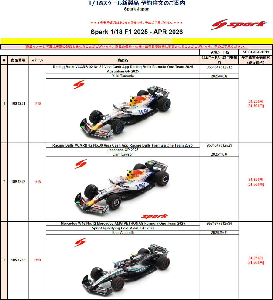 18分の1 レジン 18S1251 Racing Bulls VCARB 02 No.22 Visa Cash App Racing Bulls Formula One Team 2025 Australian GP 2025 Yuki Tsunoda 34650円