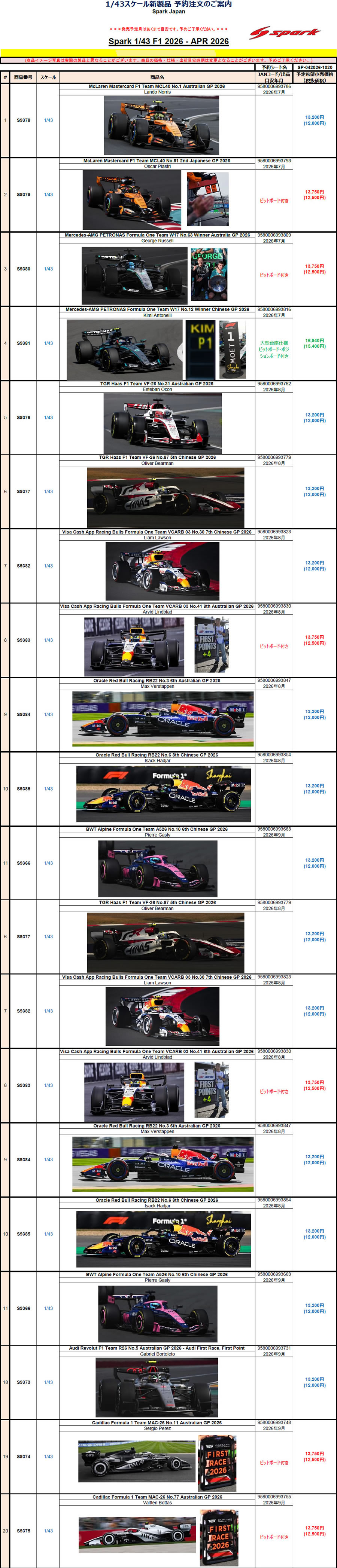 S9385 Oracle Red Bull Racing RB22 No.6 8th Chinese GP 2026 Isack Hadjar 13200円