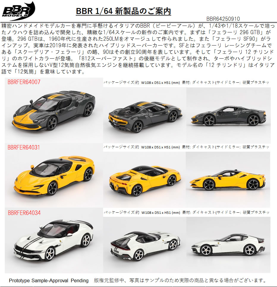 64分の1 ダイキャスト BBRFER64007 フェラーリ 296 GTB Assetto Fiorano Grigio Scuro(グレー/イエロー)4400円