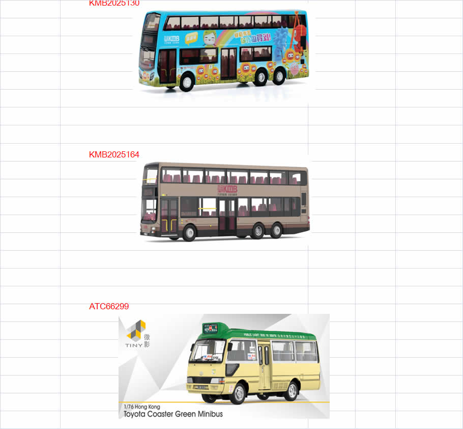ノンスケール ダイキャスト KMB2025130 KMB ADL エンバイロ500 MMC 12m (601) 3520円 KMB2025164 KMB MAN A95 12m (57M) 3520円