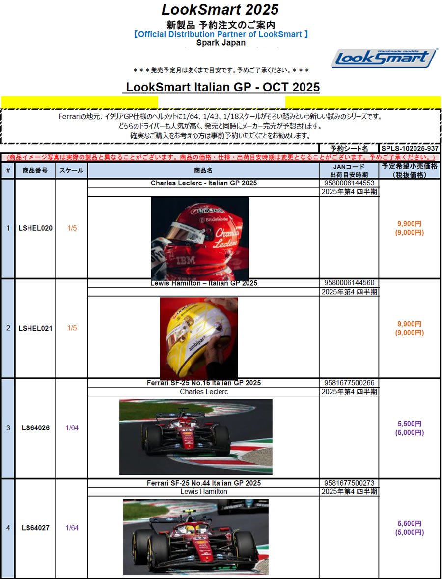 LS64027 Ferrari SF-25 No.44 Italian GP 2025 Lewis Hamilton 5500円