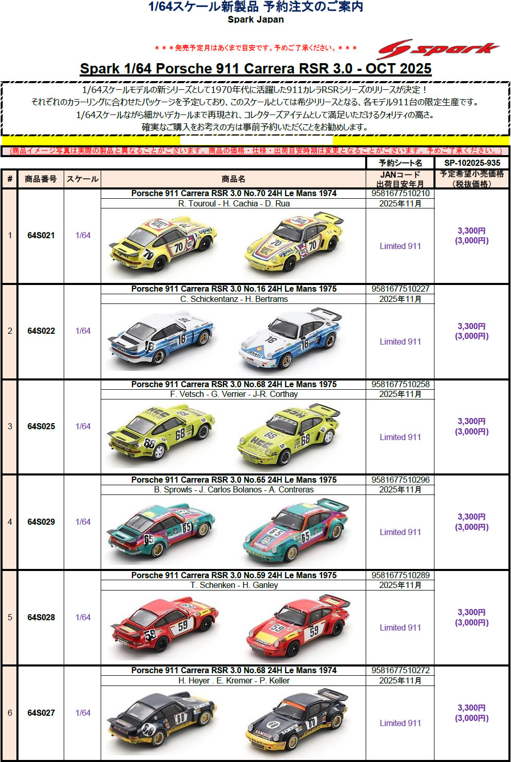 64S028 Porsche 911 Carrera RSR 3.0 No.59 24H Le Mans 1975 T. Schenken - H. Ganley 3300円