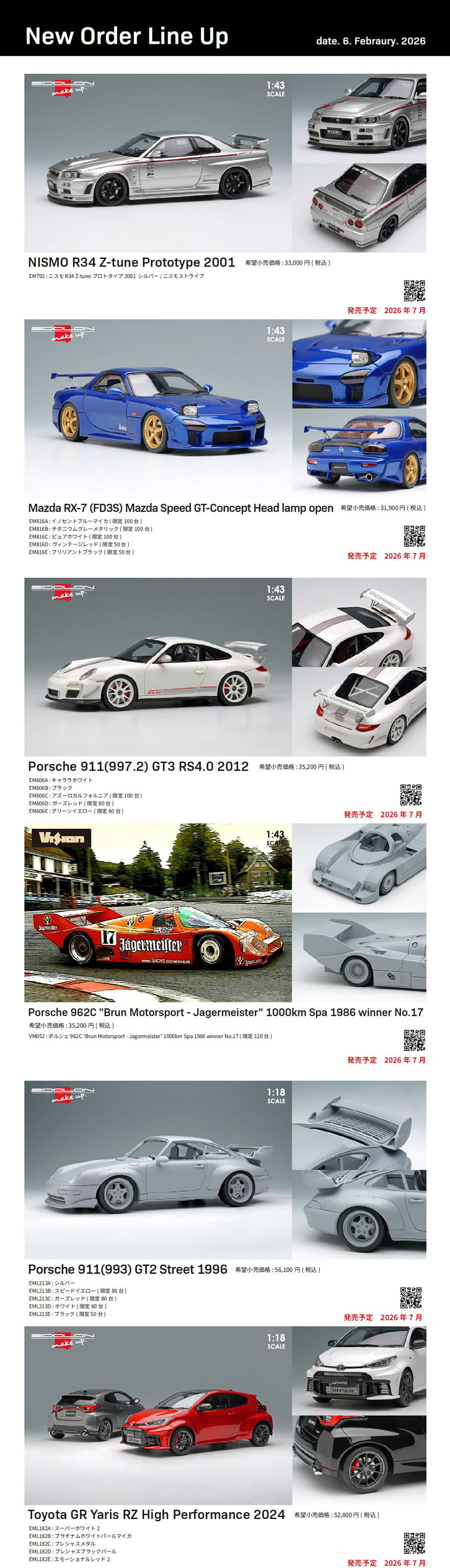 アイドロン 18分の1 レジン ●Porsche 911(993) GT2 Street 1996 56100円 EML213A : シルバー EML213B : スピードイエロー ( 限定80 台) EML213C : ガーズレッド ( 限定80 台) EML213D : ホワイト ( 限定80 台) EML213E : ブラック ( 限定50 台)