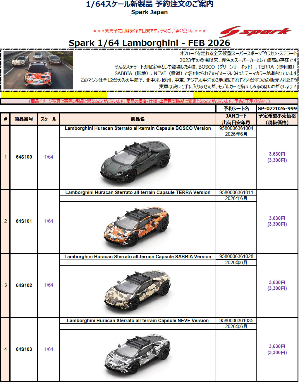 64S101 Lamborghini Huracan Sterrato all-terrain Capsule TERRA Version 3630円