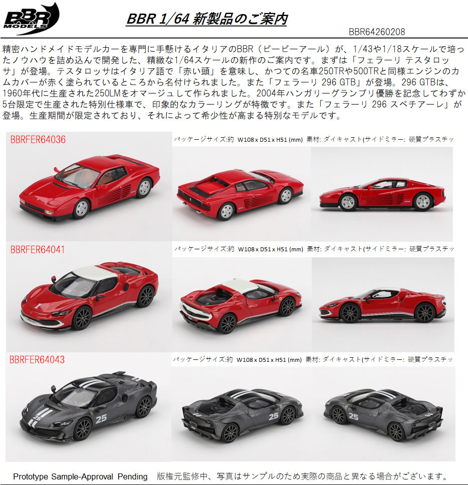 64分の1 ダイキャスト BBRFER64036 フェラーリ テスタロッサ 1987 ロッソコルサ 4400円